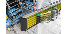 Tragprofil aus Stahlblech integriert bewährte Schleifleitungen / Mehr als drei Meter Aufhängeabstand ermöglicht Montage direkt an Regalstehern / Flexible Adaption an alle Hochregallager-Applikationen ohne Anpassung