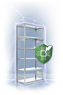 Das Regalsystem kann daher zur Lagerung von hochempfindlichen elektrischen Geräten (ESD) verwendet werden, sofern diese in geeigneten antistatischen Verpackungen aufbewahrt werden.