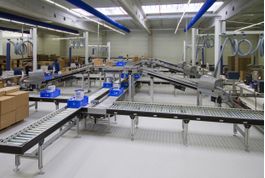 Diese Kommissionierung im Erdgeschoss und die Verpackung im 1. Obergeschoss bietet den Vorteil, dass sie Platz spart und ein übersichtliches Layout des Logistikzentrums ermöglicht. Und Übersicht ist angesichts der umzuschlagenden Menge ein notwendiges Merkmal: Immer ist die Förder- und Kommissioniertechnik darauf ausgelegt, die Inhalte von bis zu 500 Behältern pro Stunde zu kommissionieren. Die Visualisierung der Abläufe auf einem Leitrechner, die Förster & Krause realisiert hat, trägt ebenfalls zur Verbesserung der Transparenz bei.