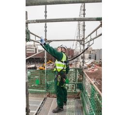 Arbeiten in der Höhe bringen das Risiko eines potenziellen Absturzes mit sich. Auffangsysteme können zwar keinen Fall verhindern, aber den Benutzer durch kontrolliertes Auffangen vor schweren Verletzungen bewahren. Das Verbindungsmittel SP-140 von SpanSet, Übach-Palenberg, erfüllt die Norm EN 355 auch für Anwender bis zu 140 kg Körpergewicht.