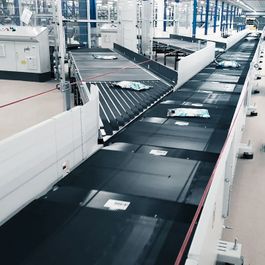 Der Quergurt-Sorter wird für das Sortieren und Befördern von Liegeware eingesetzt. Besonders effizient ist das Handling von Behältern, Kartons, Paketen sowie Versandtaschen bzw. -tüten mit einem Gewicht zwischen 50 g und 35 kg.