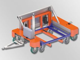 Alle JDC-Routenzuganhänger laufen optimal spurtreu durch Allradlenkung. Es können dadurch sehr enge Kurvenradien gefahren werden. Dies ermöglicht auch den Einsatz der Routenzuganhänger in „gewachsenen“ Produktionen, in denen schwierige Platzverhältnisse herrschen.